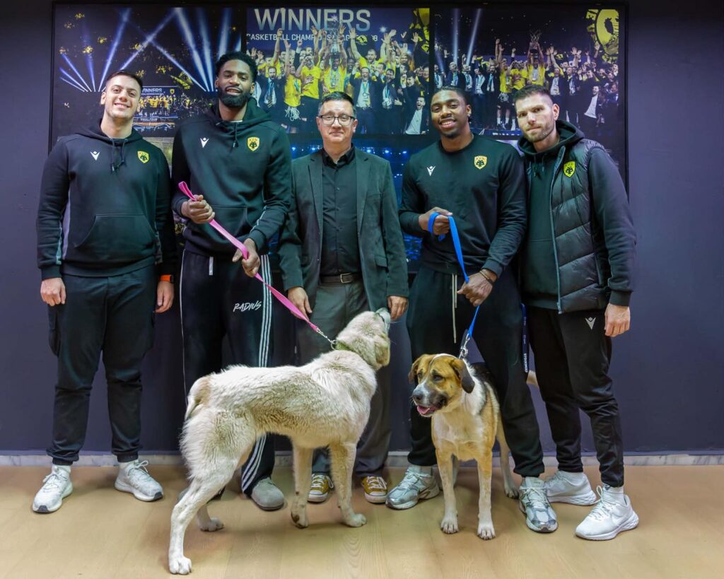 Οι πρωταγωνιστές της «Βασίλισσας» του μπάσκετ, Δημήτρης Φλιώνης, Δημήτρης Κατσίβελης, Νίκος Αρσενόπουλος, ΡαϊΚουάν Γκρέι, Φρανκ Μπάρτλεϊ, Γκρεγκ Μπράουν και ΚιΣόν Φίζελ, μαζί με τον Team Manager Ηλία Κέκο, τον προπονητή Μαρίνο Κωνσταντή, τον φροντιστή Γιώργο Σταθόπουλο, τον Υπεύθυνο Τύπου Χρήστο Παπαδόπουλο, τους προπονητές Στέβαν Μίγιοβιτς, Μίλος Σάκοτα και τον Assistant Team Manager, Άκη Καλλινικίδη, βρέθηκαν κοντά στα αδέσποτα. Οι στιγμές που απαθανατίστηκαν με τους αθλητές να χαϊδεύουν και να φωτογραφίζονται με τα τετράποδα, ήταν γεμάτες αυθεντική ευαισθησία, στέλνοντας ένα ισχυρό μήνυμα: κάθε ζωή αξίζει αγάπη και προστασία. Η παρουσία τους αποτέλεσε μια μοναδική ευκαιρία να αναδειχθούν οι ανάγκες των ζώων και να ενθαρρυνθεί η υιοθεσία.