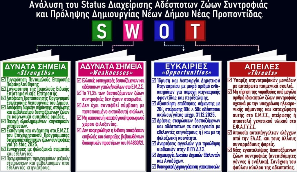 Συνολικά, ο Δήμος Νέας Προποντίδας έχει επιδείξει αξιόλογη πρόοδο και συνέπεια στη διαχείριση των αδέσποτων ζώων. Η συστηματική αυτή προσπάθεια, που βασίζεται σε οργάνωση, συνεργασία και αξιοποίηση πόρων, συνεχίζεται και δεσμεύεται ότι θα ενισχυθεί ακόμα περισσότερο στο άμεσο μέλλον, με στόχο την ακόμα πιο αποτελεσματική προστασία των ζώων και της κοινότητας.