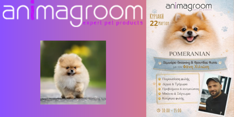 Η Animagroom Professional Pet Grooming Products διοργανώνει ένα μοναδικό σεμινάριο, αφιερωμένο στην περιποίηση της δημοφιλούς φυλής Pomeranian. Συγκεκριμένα, η εκδήλωση θα λάβει χώρα στις 22 Μαρτίου 2026, προσφέροντας σε επαγγελματίες groomers πολύτιμες γνώσεις και πρακτικές συμβουλές για την άριστη φροντίδα αυτών των αξιαγάπητων σκύλων.