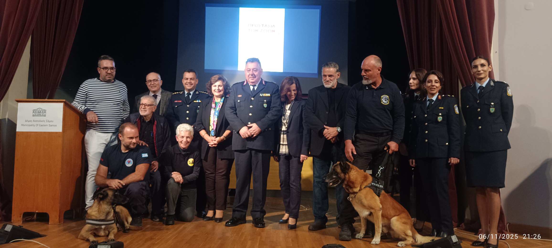 Με μεγάλη επιτυχία πραγματοποιήθηκε στην Σάμο η Ημερίδα για την «Προστασία των Ζώων», μία εκδήλωση κορυφής που έφερε στο προσκήνιο το ζωτικό θέμα της ευζωίας των ζώων και την εφαρμογή της σχετικής νομοθεσίας. Η διοργάνωση πραγματοποιήθηκε από τη Γενική Περιφερειακή Αστυνομική Διεύθυνση Βορείου Αιγαίου, τους Δήμους Ανατολικής και Δυτικής Σάμου, σε συνεργασία με την Ειδική Γραμματεία για την Προστασία των Ζώων Συντροφιάς, το Zero Stray Pawject και την Πανελλαδική Φιλοζωική και Περιβαλλοντική Ομοσπονδία (ΠΦΠΟ).