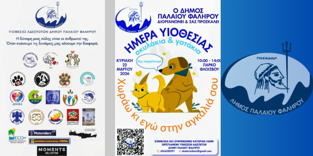 Αύριο, Κυριακή 22 Μαρτίου, μια ξεχωριστή εκδήλωση αγάπης και προσφοράς περιμένει όλους τους φιλόζωους στο Πάρκο Φλοίσβου. Ο Δήμος Παλαιού Φαλήρου, σε συνεργασία με ενεργά φιλοζωικά σωματεία, διοργανώνει την Ημέρα Υιοθεσίας, δίνοντας την ευκαιρία σε μικρά γατάκια και σκυλάκια να βρουν την παντοτινή τους οικογένεια.